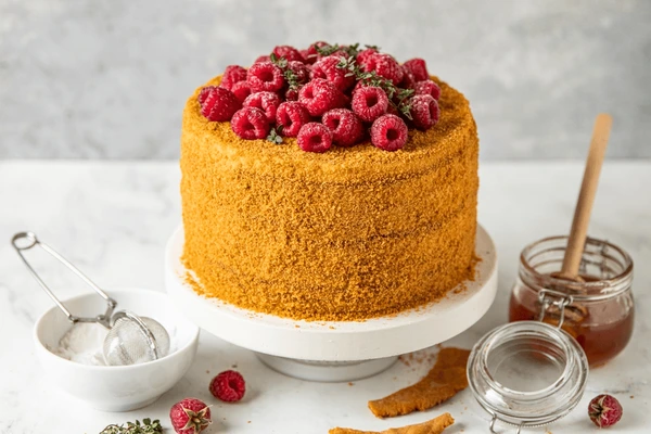Nutella spread and fresh cream layered between three generous tiers of our fluffy eggless sponge. The cake is bordered with Ferrero Rocher and chocolate-fresh-cream piping, and finished with nibbled hazelnuts along the sides — a dream treat for any Nutella lover!
